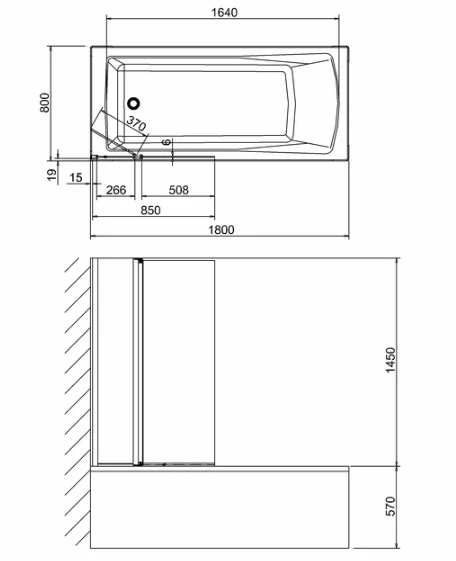 Britton Cleargreen Hinged Bath Screen with Fixed Panel, 1450 x 850mm